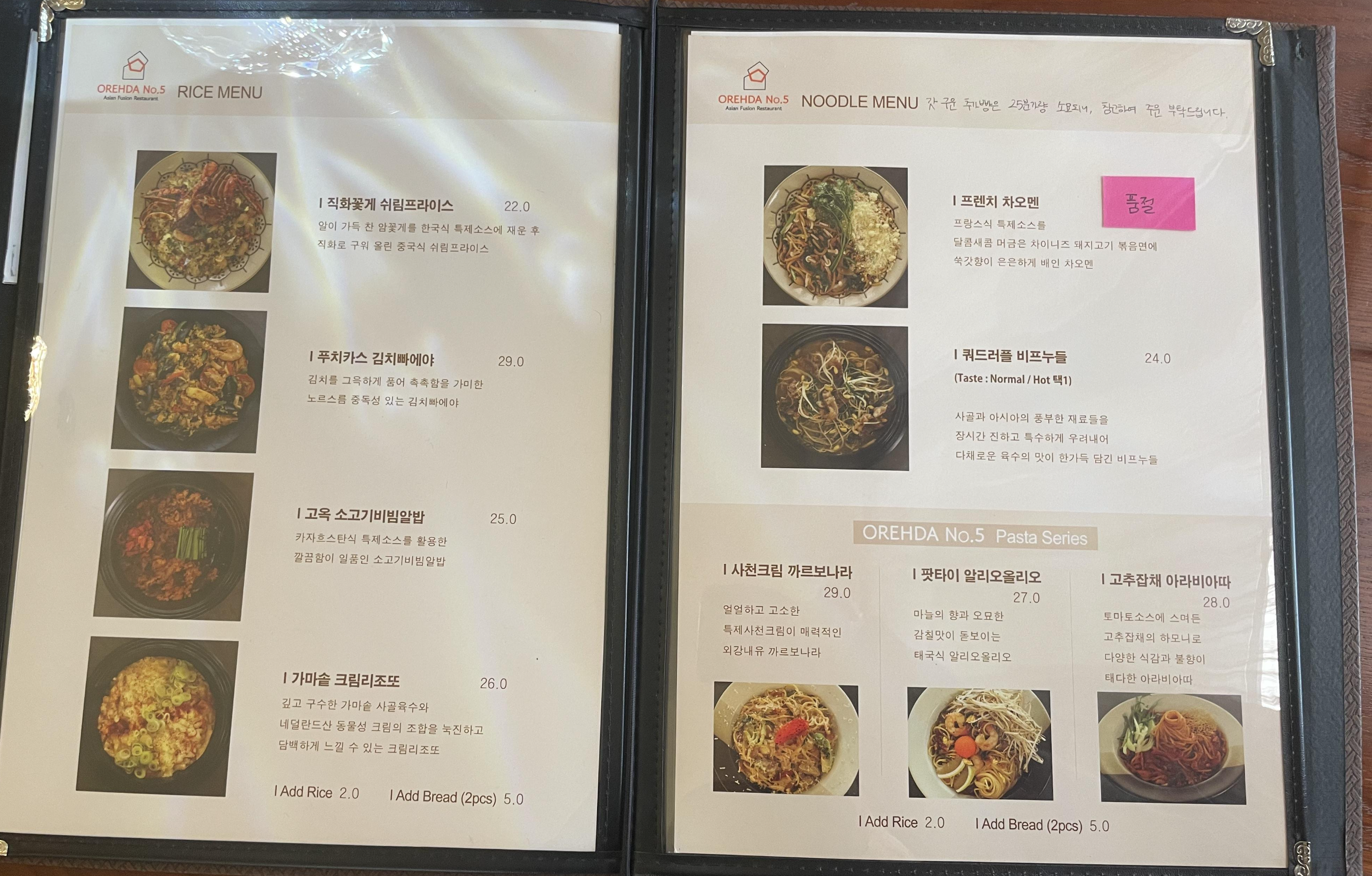 아시아와 양식이 섞인 메뉴들이 돋보입니다.