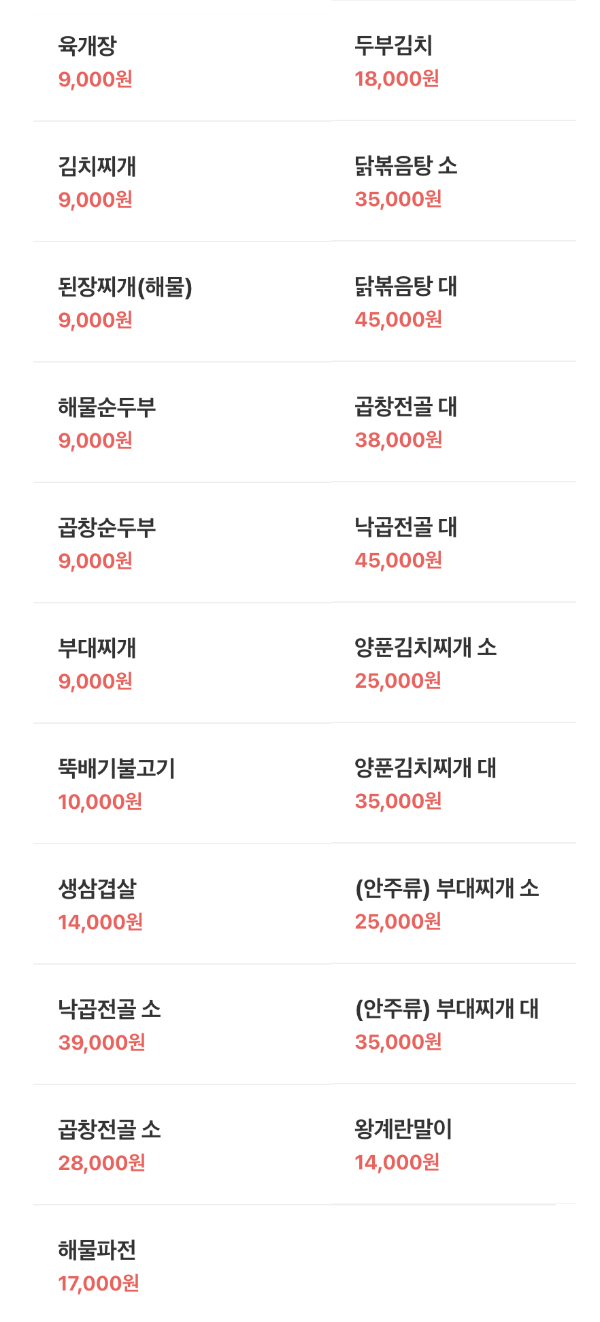 메뉴판 구성이 심금을 울리네요.