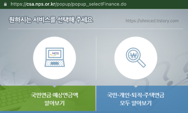 [국민연금공단 홈페이지] 국민연금 예상수령금액 조회하러 가기