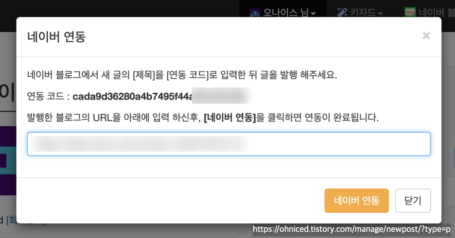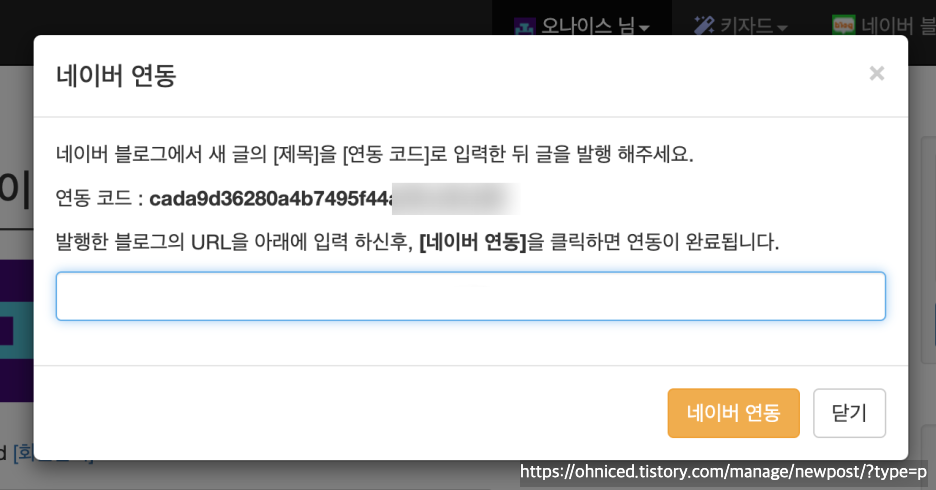 이제 블로그 글쓰기 제목에 연동코드를 넣고 글 발행을 해주세요.