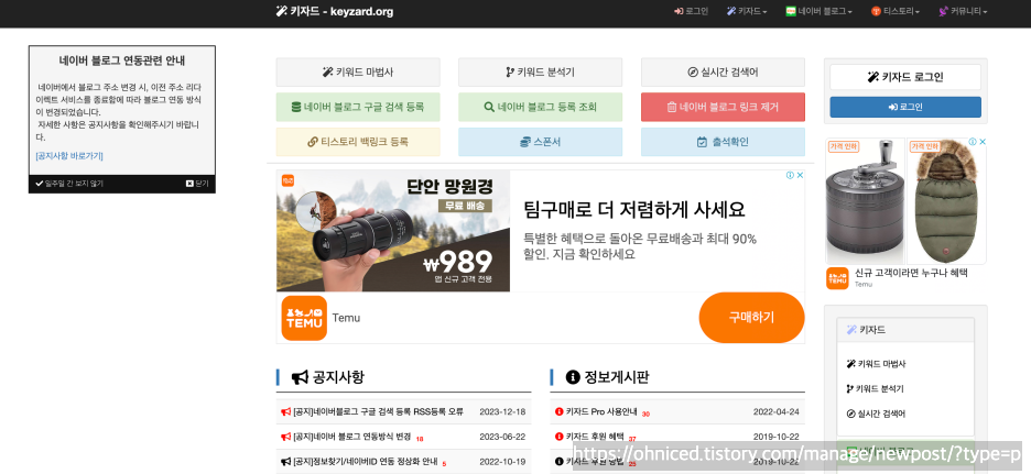 또, 키자드를 후원하면 자동으로 새로운 글을 구글 검색에 등록해준다고 합니다.