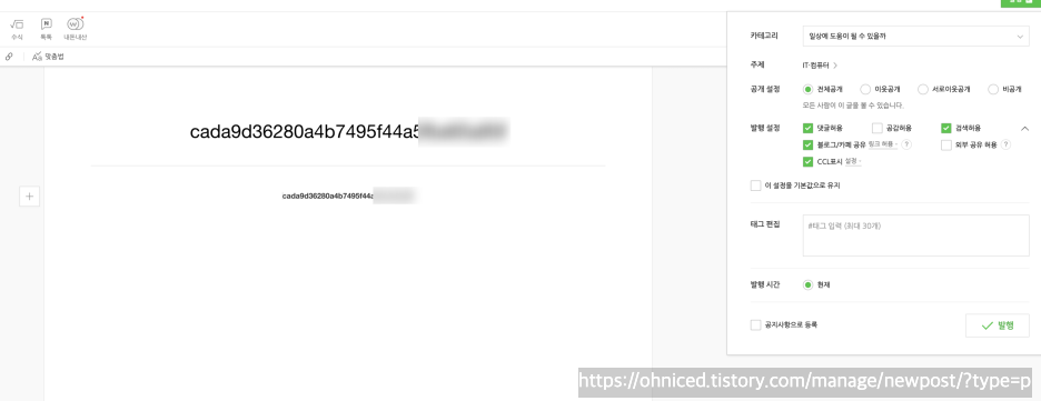 발행한 글 url를 복사해