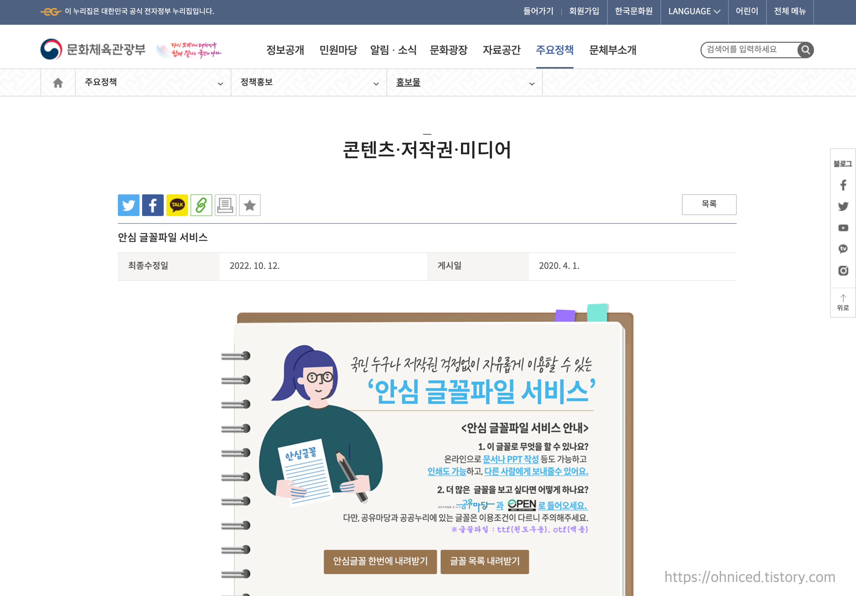 정책홍보 - 홍보물 - 콘텐츠·저작권·미디어 - 안심 글꼴파일 서비스 | 문화체육관광부