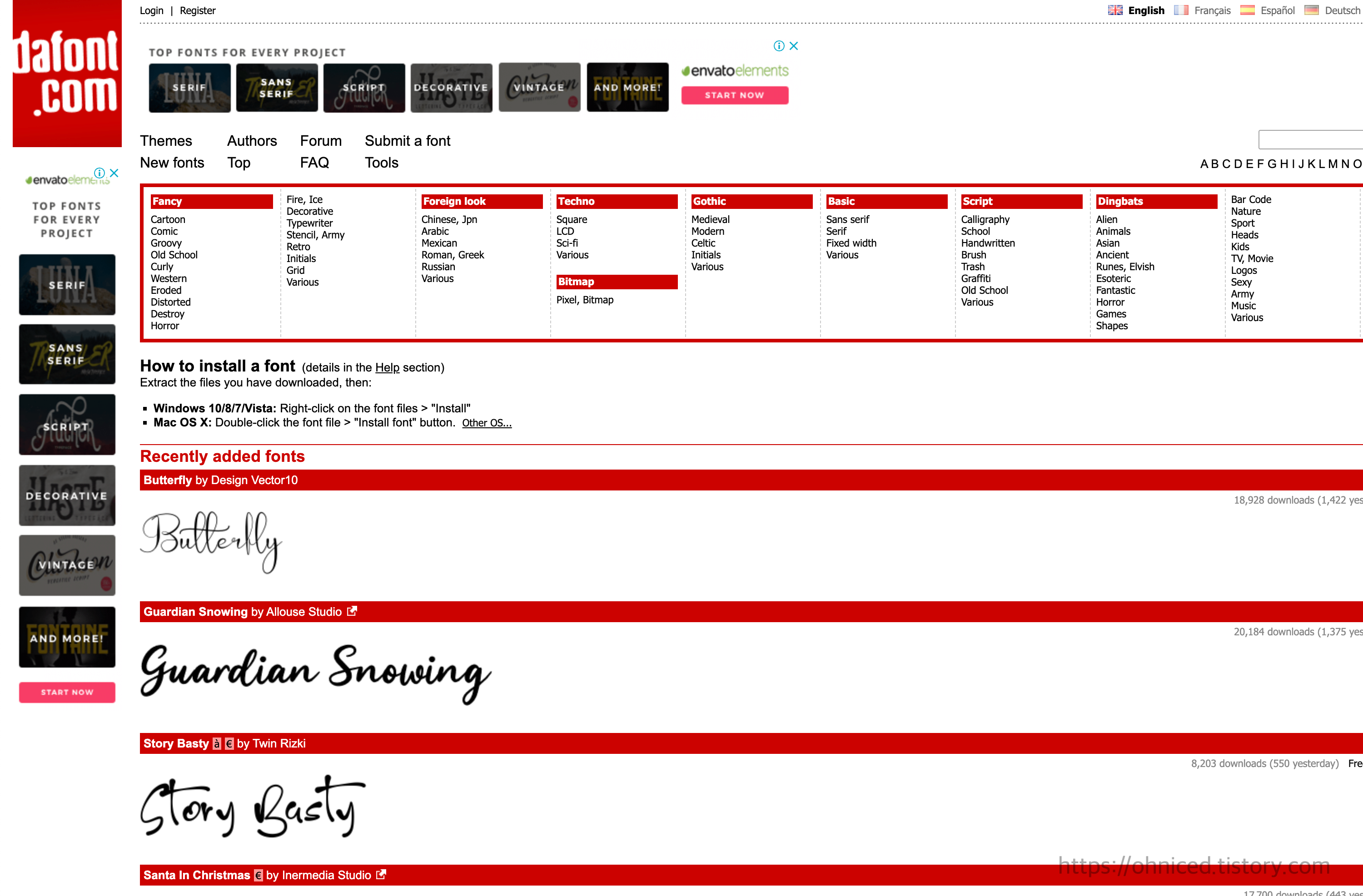 다폰트 사이트는 왠만한 사람들은 알고 있을 정도로 유명해서 넣어봤습니다.