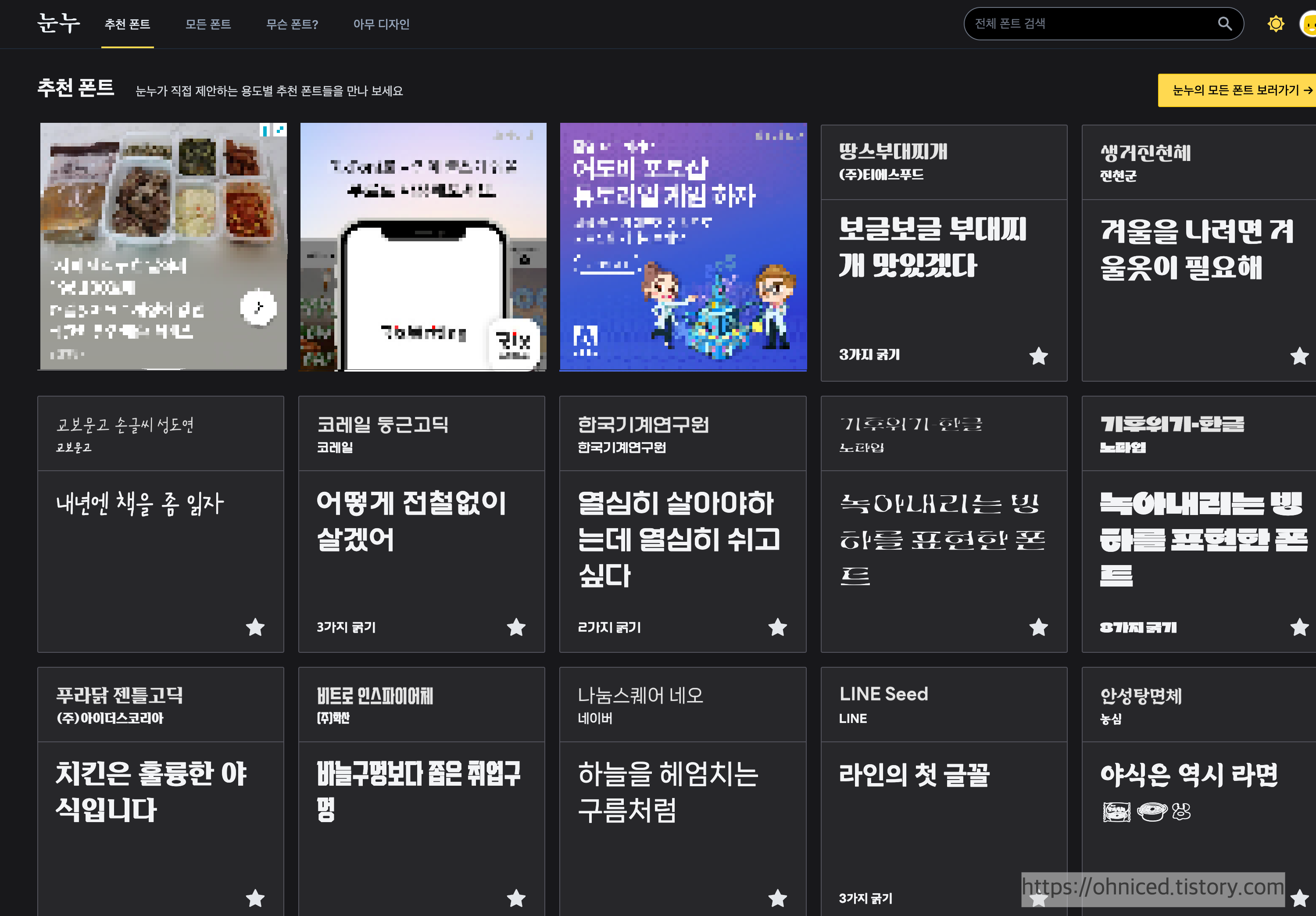 눈누는 한글 폰트를 모아놓은 사이트입니다.