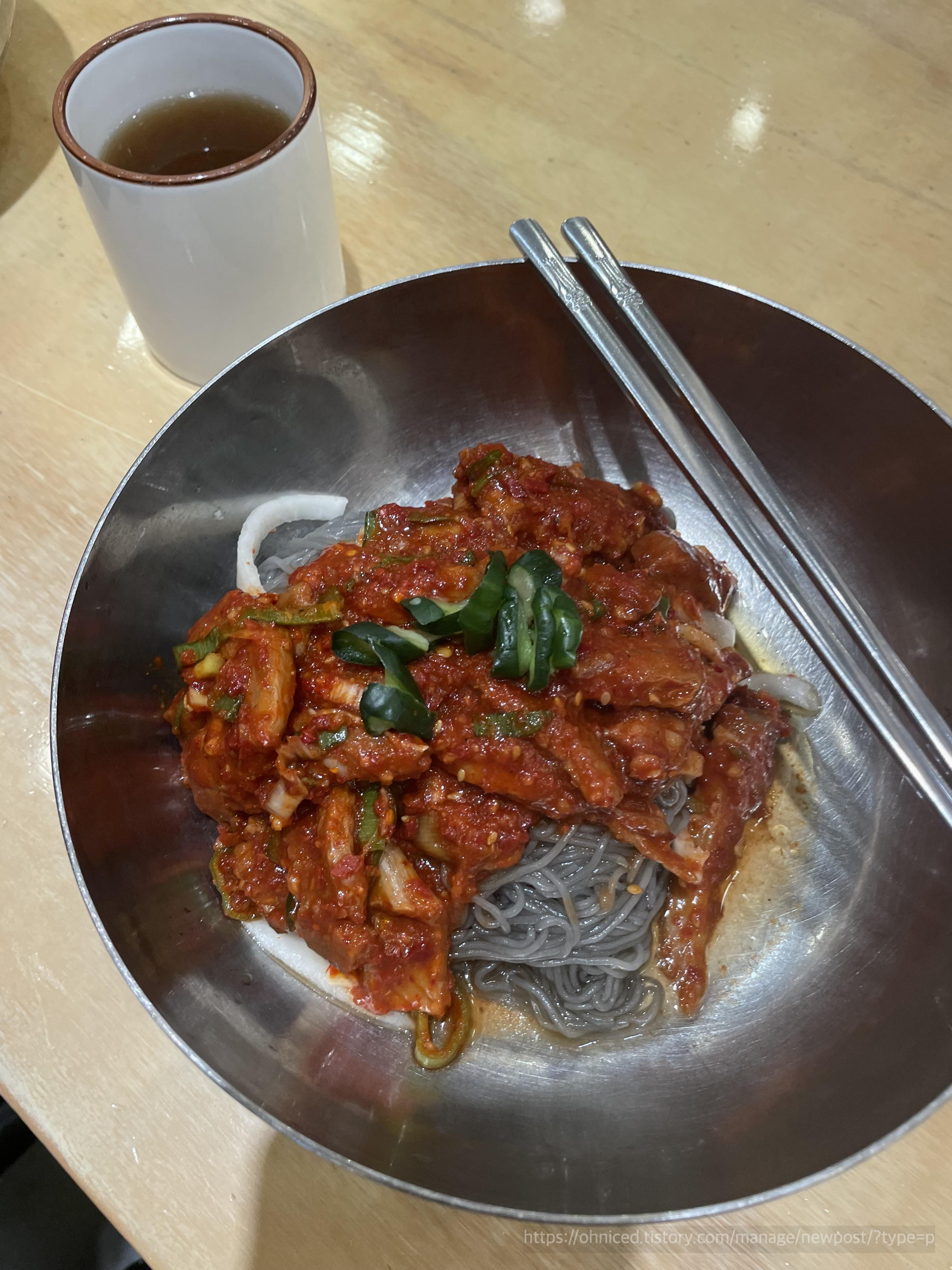 면은 조금 두꺼웠고, 독특한 회냉면의 맛이 안나서 꼭 식초랑 겨자를 넣어야지만 맛이 났습니다.