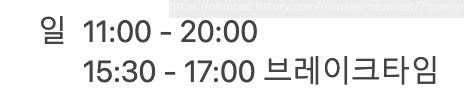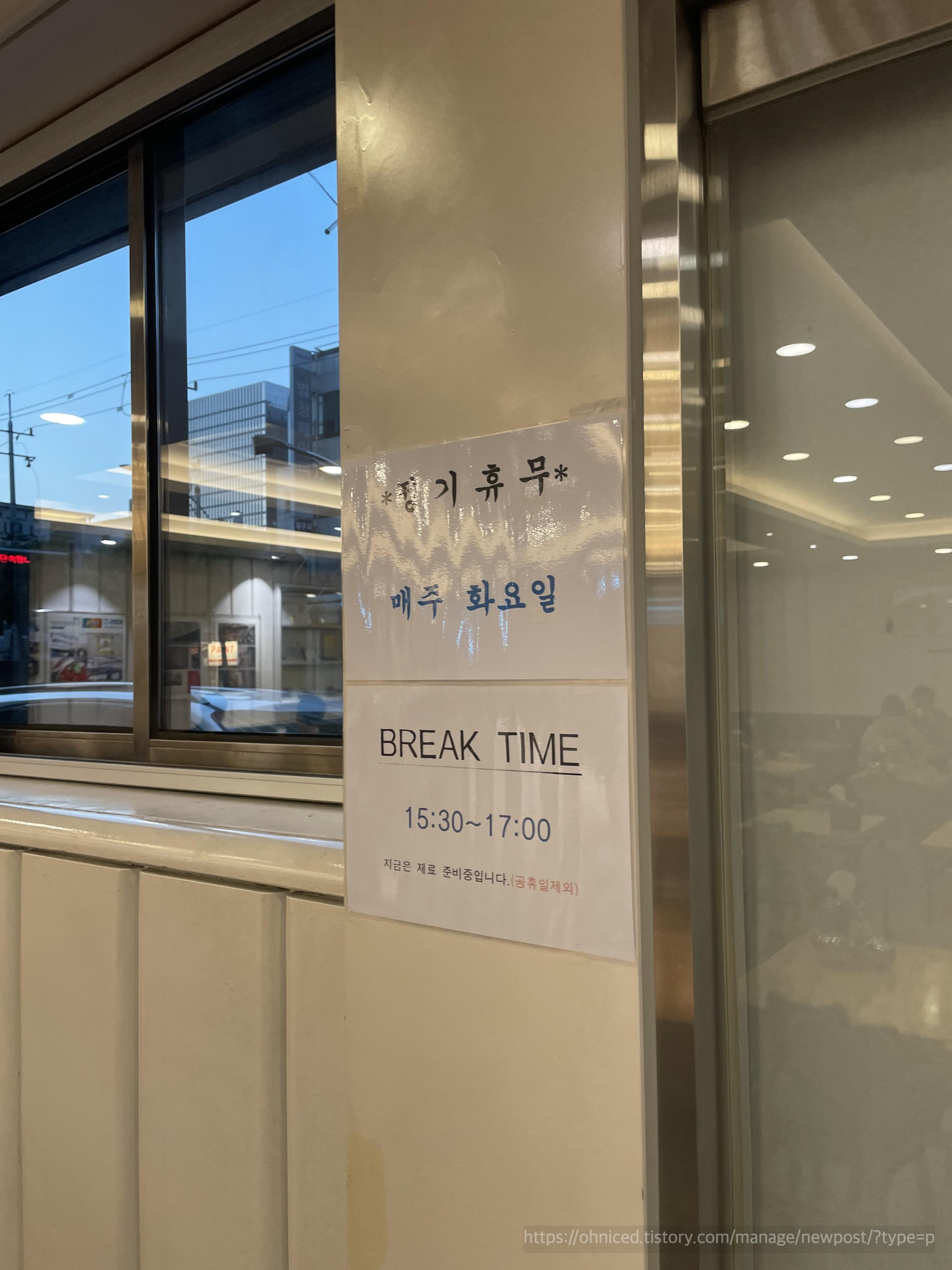 (15:30 ~ 17:00 브레이크타임 / 수요일 및 공휴일은 브레이크 타임 없음)