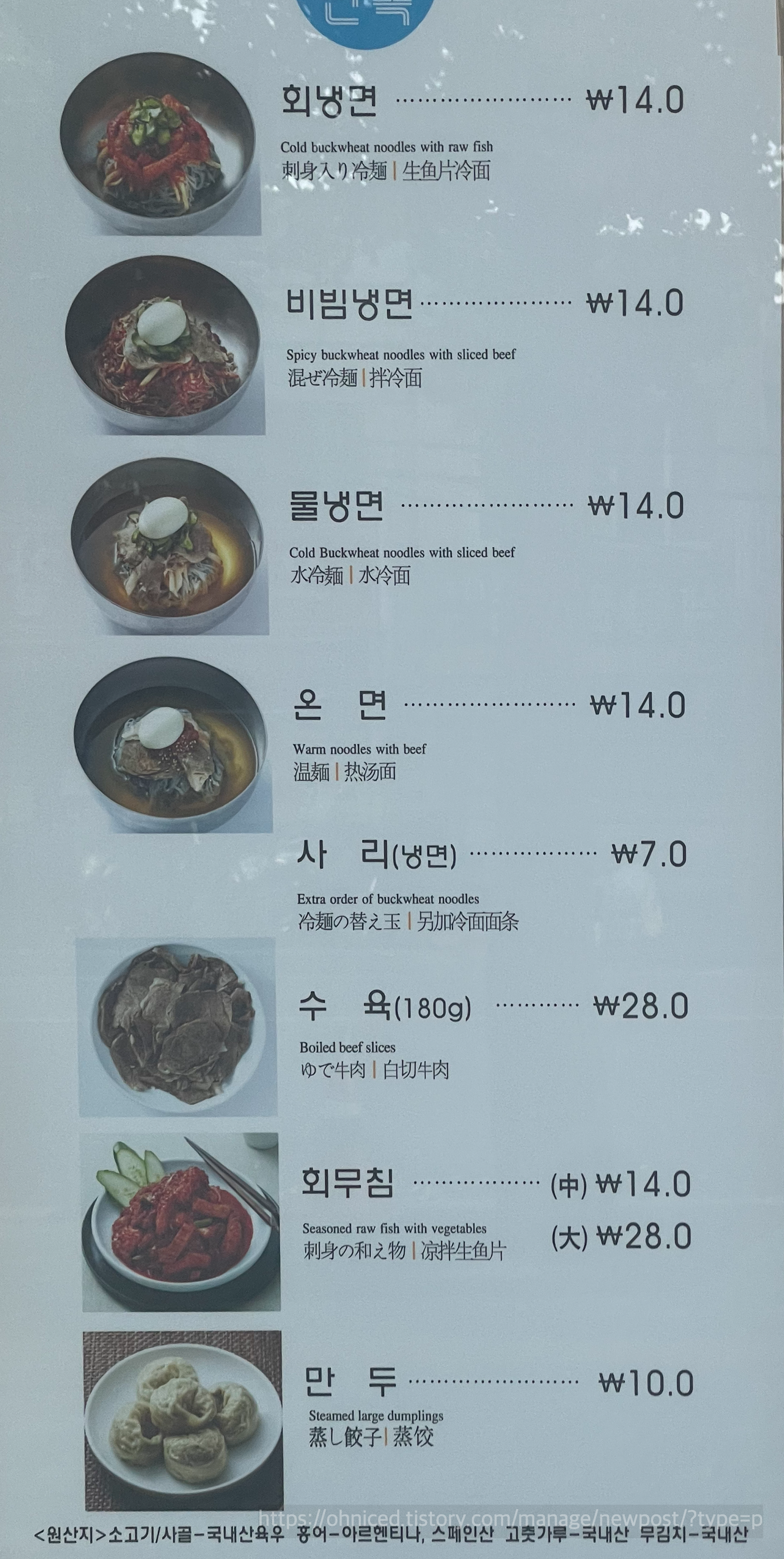 오늘은 미세린 상을 받은 냉면집을 소개합니다.