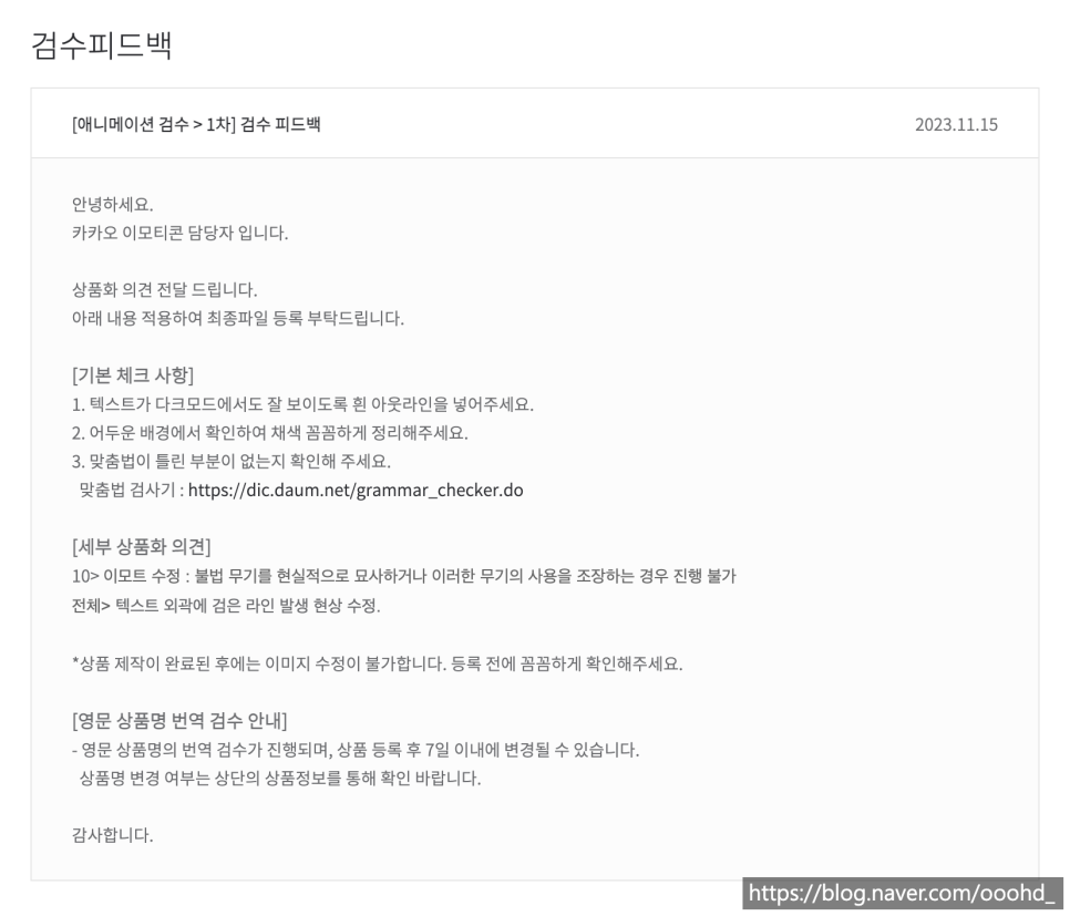 2023.11.11 - [나 원래 디자이넌데/이모티콘 데려가세요] - [카카오] 이모티콘 승인 과정_1 (제품명 변경_강몽구)