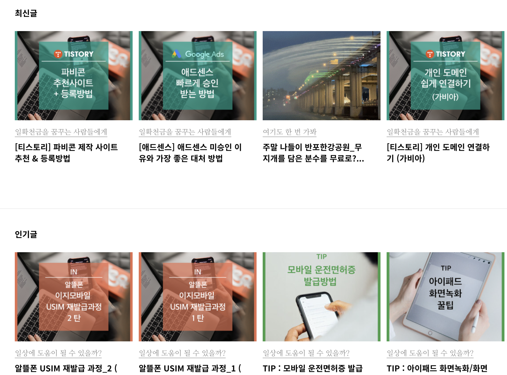오늘은 티스토리 메인 페이지 썸네일 사이즈 정사각형으로 변경하는 방법에 대해 공유하고자 합니다.