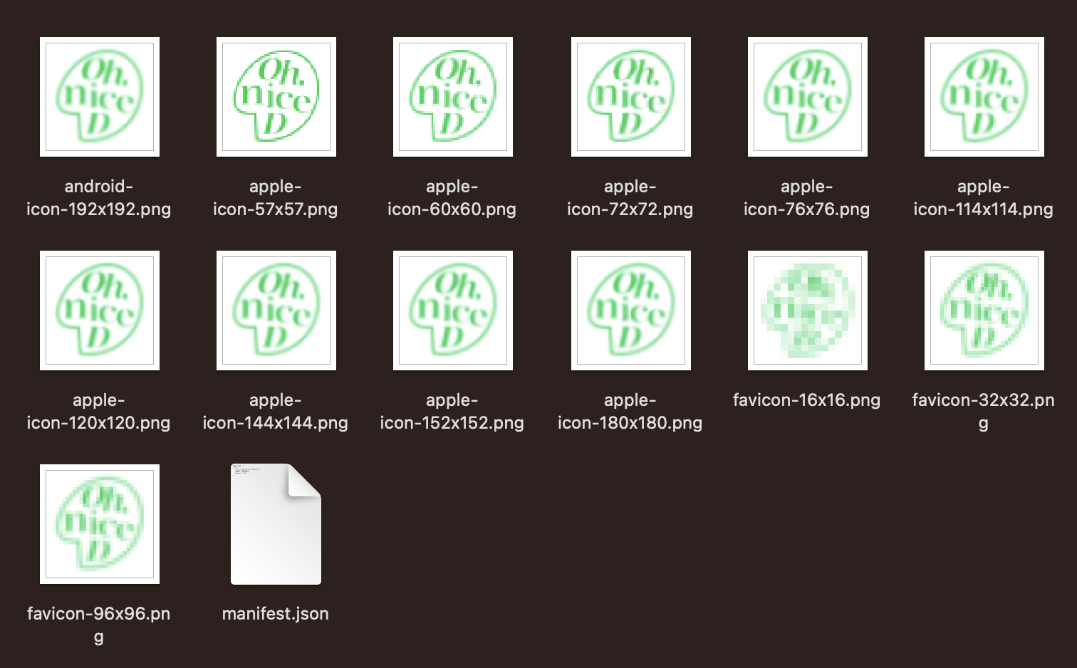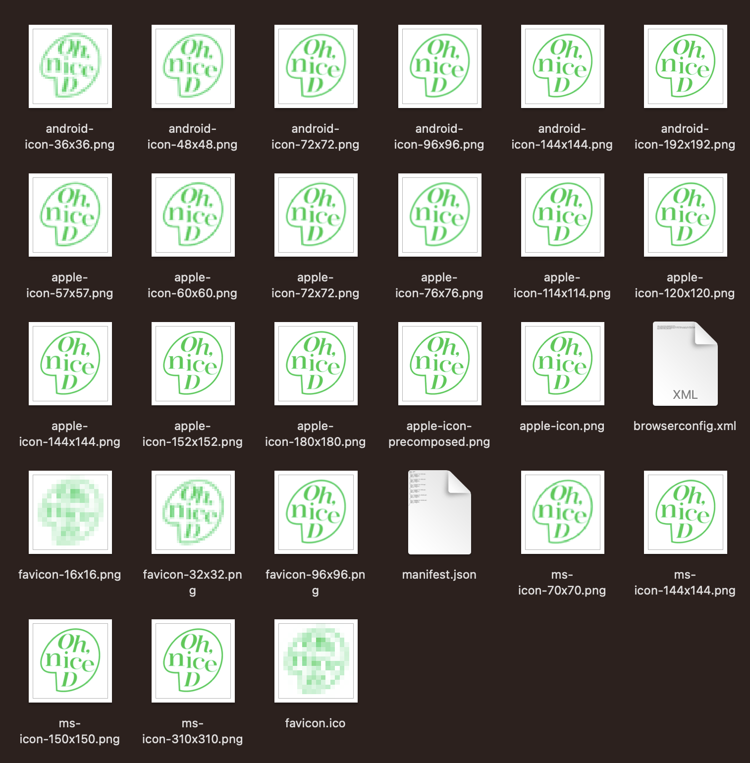 대표 로고 이미지 하나만 넣으면 파비콘 파일과 다양한 사이즈의 png. 파일이 한꺼번에 생성됩니다.