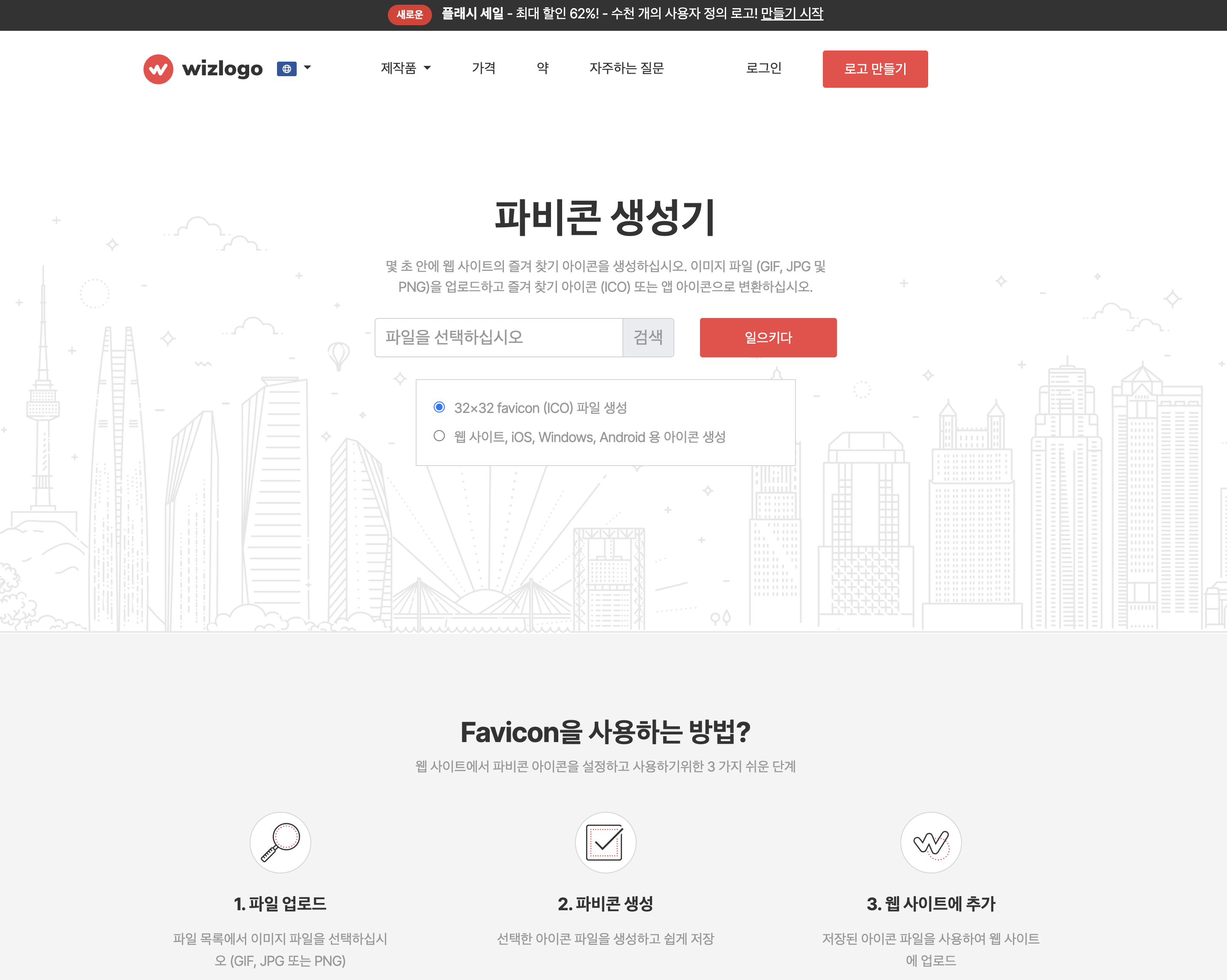메인 페이지 -> 파일선택 후 -> 이미지 첨부 -> 파비콘 만들기 클릭해주세요.