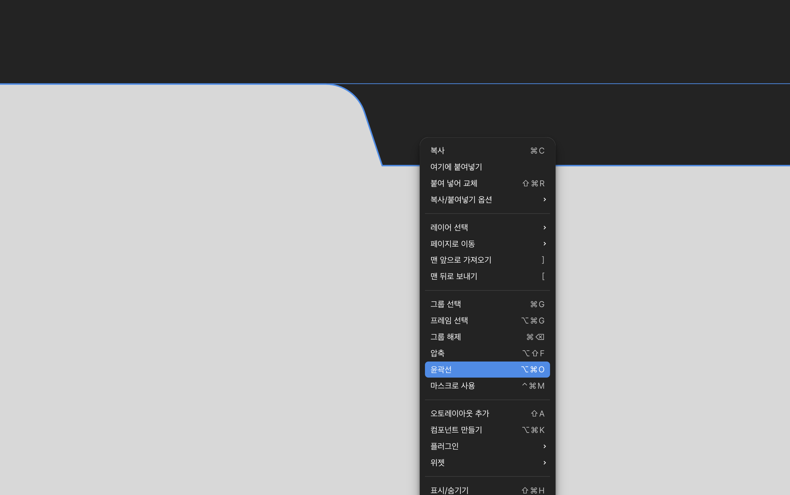 2. Cmd + E (또는 Ctrl + E) 눌러 벡터로 변환 또는 마우스 오른쪽 클릭 → 윤곽선 만들기