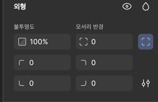 • 우측 속성창의 Corner Radius 항목에서 값 입력 (예: 30px)