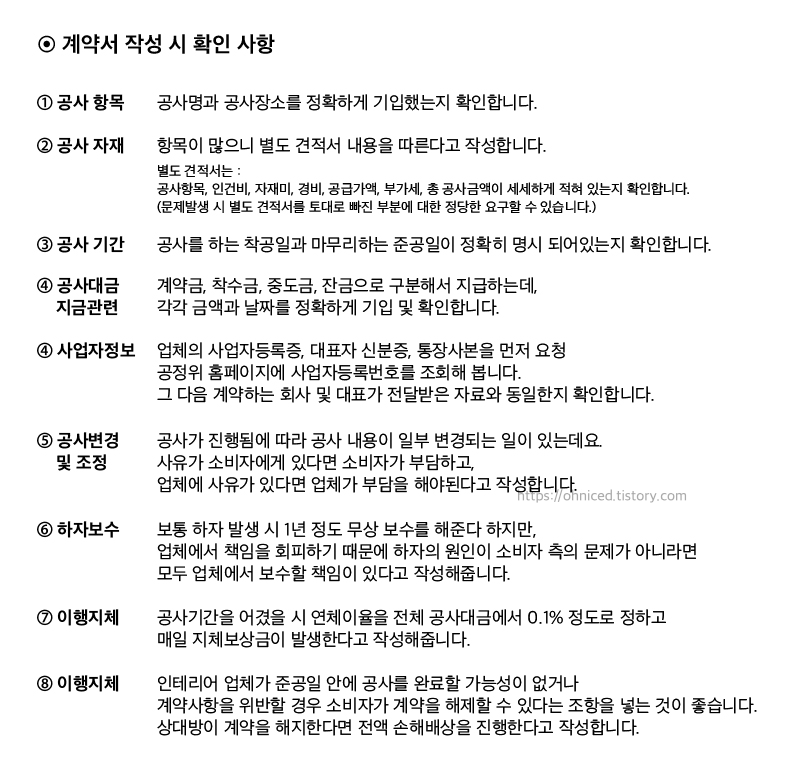 - 인테리어 업체와 계약서 작성할 때 확인 사항을 살펴보겠습니다.