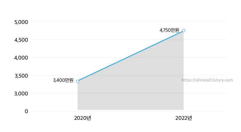 전용면적 84㎡(34평형) 기준으로 보면, 총비용이 3400만원에서 4750만원으로 40% 정도 오른 추세입니다.