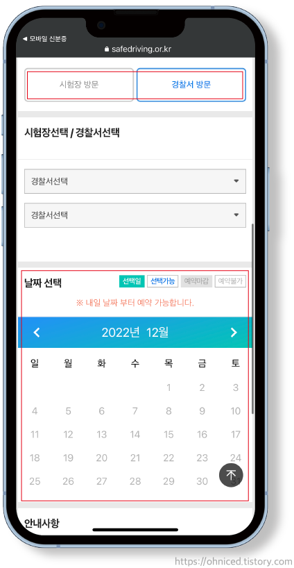 면허증 종류 / 발급위치 / 날짜 설정하기