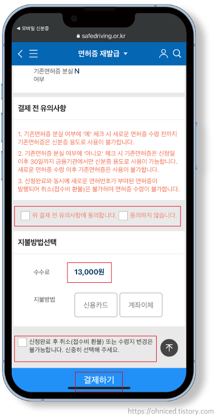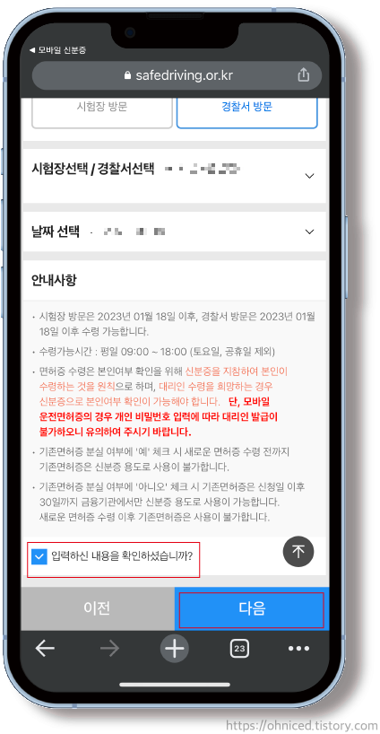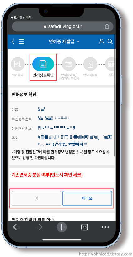 저는 면허증 분실은 아니라서 아니오를 눌렀습니다.
