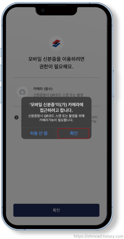 (*저는 딱히 카메라를 사용하지 않았지만 일단 확인을 눌러주었고, 인증이 완료된 다음은 카메라 허용안함으로 설정해주었습니다.)