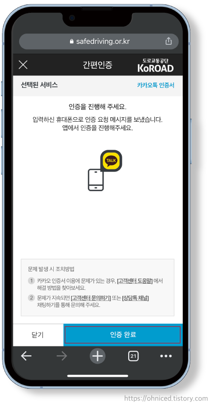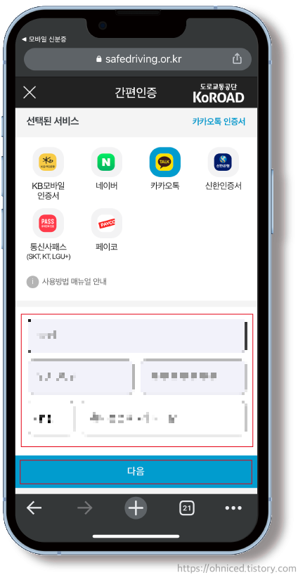 저는 카카오 인증을 눌러 인증을 시작했습니다.