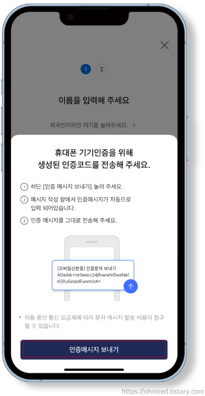 인증메시지 보내 본인 휴대폰인지 인증을 해줍니다.