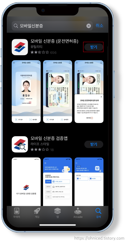 앱스토어 -> 모바일 신분증을 검색합니다.