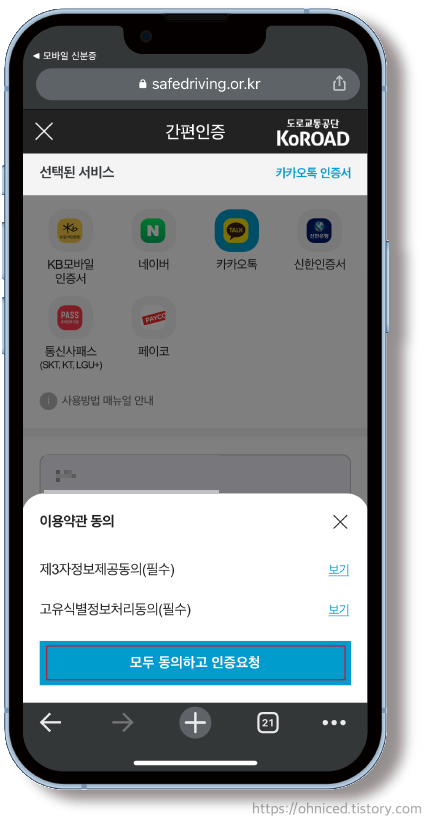 정보입력 후 동의하고 인증을 요청해줍니다.