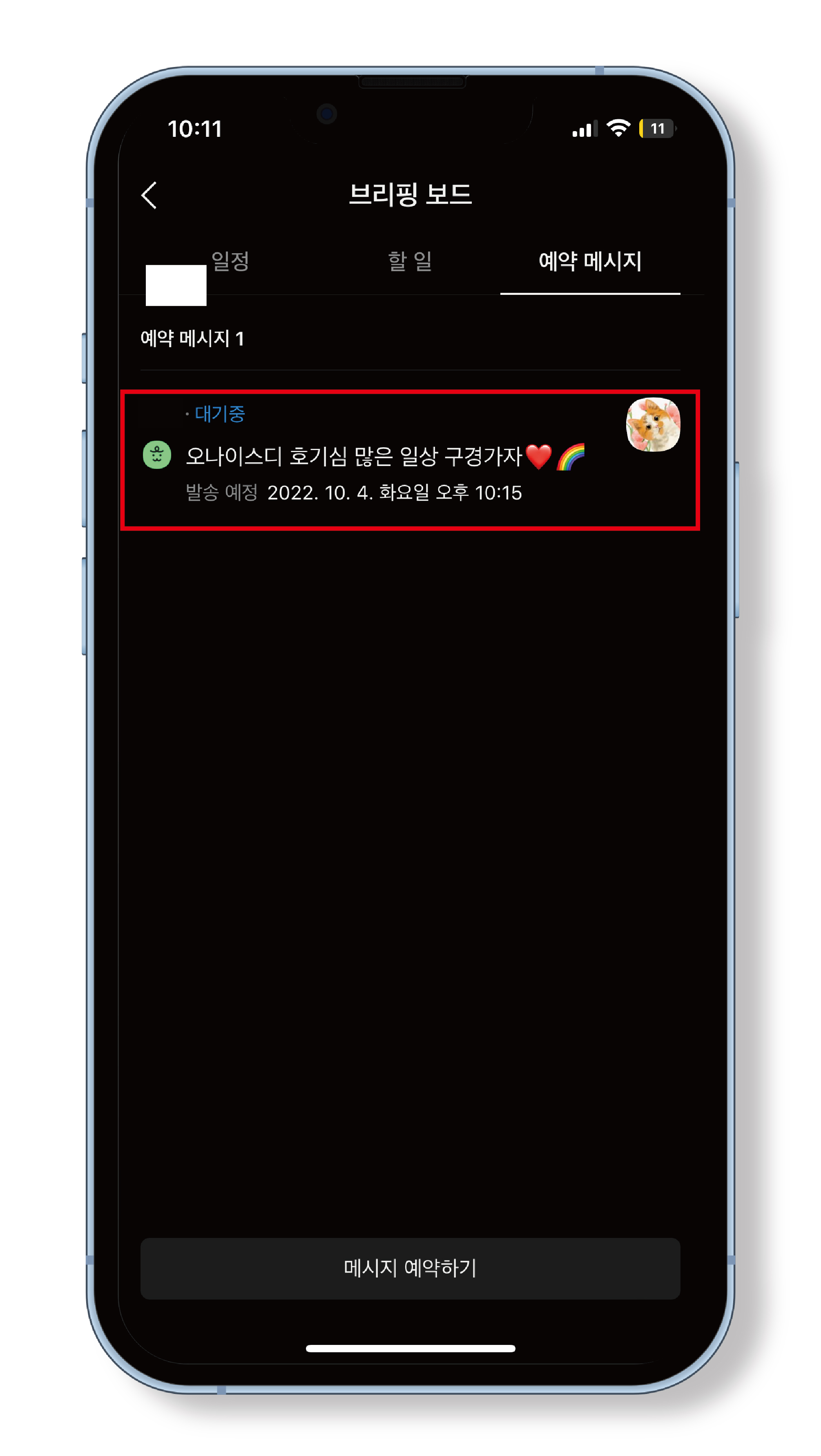 모임에 사전안내 또는 업무상 나중에 꼭 보내야하는 메시지 등